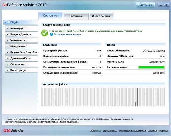 BitDefender Antivirus 2010 надежный антивирус, эффективно защитит ваш компьютер от всех типов вредоносных программ (вирусов, троянов, программ-шпионов, руткитов и т.д.), фишинг-атак и кражи личных данных, не замедляя работу компьютера.