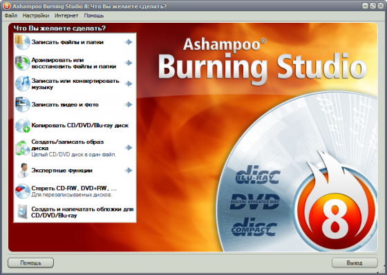 Ashampoo Burning Studio - пакет программ для записи CD-RW, DVD-RW, DVD+RW и Blu-ray дисков. Утилита позволяет создавать проекты и записывать CD/DVD (в том числе MP3-CD, VCD, S-VCD и Blu-ray). Программа поддерживает длинные имена файлов (127 знаков для DVD и Blu-ray и 64 для CD), автоматическую настройку параметров, сохранение и загрузку проекта, создание образов, простое управление файлами с помощью Drag&Drop и многое другое. Работает совместно с большинством записывающих устройств.