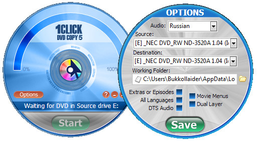 1Click DVD Copy - простой и быстрый инструмент для копирования видео DVD. Подойдёт как начинающим пользователям, (так как очень прост), так и продвинутым... Важно не то, что она обладает простым, но эргономичным интерфейсом и быстро работает, а то, что именно эта программа выдает наилучшее качество изображения при копировании среди себе подобных. Даже при 40% сжатии копия практически неотличима от оригинала.