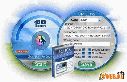 1Click DVD Copy - простой и быстрый инструмент для копирования видео DVD. Подойдет как начинающим пользователям, (так как очень прост), так и продвинутым... Важно не то, что она обладает простым, но эргономичным интерфейсом и быстро работает, а то, что именно эта программа выдает наилучшее качество изображения при копировании среди себе подобных. Даже при 40% сжатии копия практически неотличима от оригинала.