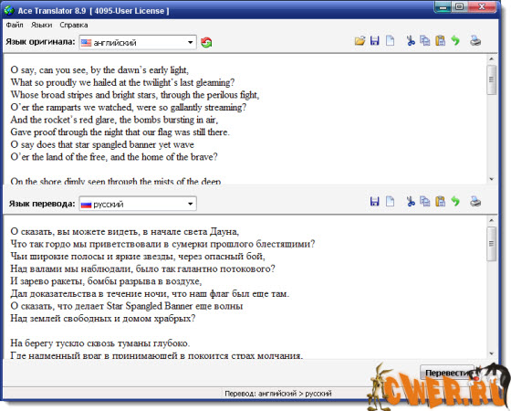 Ace Translator – программа для перевода любых текстов с иностранных языков на русский и обратно. Новый интерфейс в стиле Ace Translator. Улучшенный механизм перевода гарантирует более высокое качество перевода благодаря обновленным лингвистическим алгоритмам хотя какие они при одном метре данных.