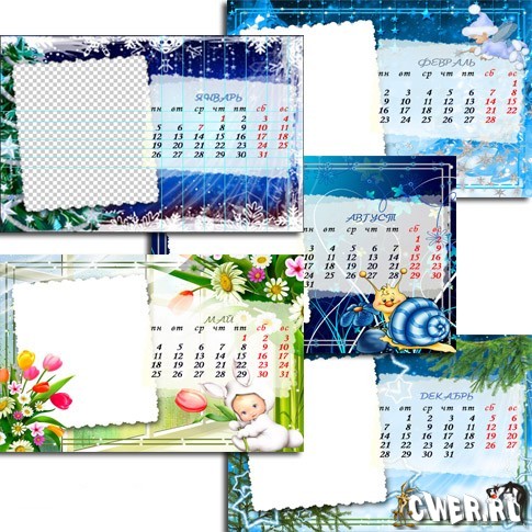 2 календаря на 2009 год в psd формате, слои скрыты, размер 2094x3142 пикс, А4 формат, возможность подстановки своего фото.
