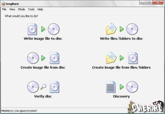 ImgBurn - утилита для записи образов дисков. Эта небольшая программа обладает всеми необходимыми функциями для прожига практически любых образов CD/DVD дисков. В ImgBurn имеются еще ряд других функций, которые позволяют открывать/закрывать лоток привода, осуществлять поиск в Интернет новых версий прошивки для данного устройства записи, изменять метку ISO-образа, блокировать/разблокировать открытие лотка привода. Кроме того, программа умеет очищать диски двумя способами - быстрым и полным. Главной ее особенностью является поддержка большого количества приводов различных производителей. Программа имеет ряд настроек, где можно задать ассоциацию с поддерживаемыми расширениями файлов-образов (BIN, GCM, LST, UDI, CDI, FI, MDS, CDR, IMG, NRG, DVD, ISO, PDI), выбрать интерфейс записи (ASPI, ASAPI, SPTI) и звуковые схемы.