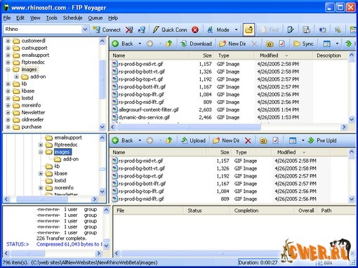 SmartFTP - на мой взгляд, самый лучший FTP клиент, с легко настраиваемым эксплорероподобным интерфейсом и поддержкой тем Windows XP. В программе реализованы: многопоточная загрузка, докачка, работа через прокси и файрволы, SSL, FXP, операции Drag-n-Drop, работа по расписанию, ведение лог-файлов, просмотр подключаемых сайтов, закладки (Favorites) и возможность взаимодействия с Windows Commander 5.0.