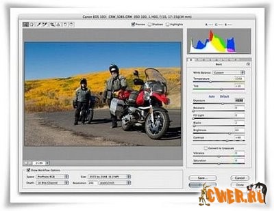Плагин для Adobe Photoshop CS3, позволяющий проводить всестороннюю работу с графическими файлами в формате RAW (как известно, файлы такого формата являются как бы "цифровыми негативами", т.к. несут в себе наиболее полную информацию о сделанном снимке).Плагин Adobe Camera Raw позволяет работать с этими файлами как с обычными, достигая при этом высоких художественных результатов, при этом Adobe Camera Raw поддерживает файлы RAW, созданные большинством цифровых фотоаппаратов.