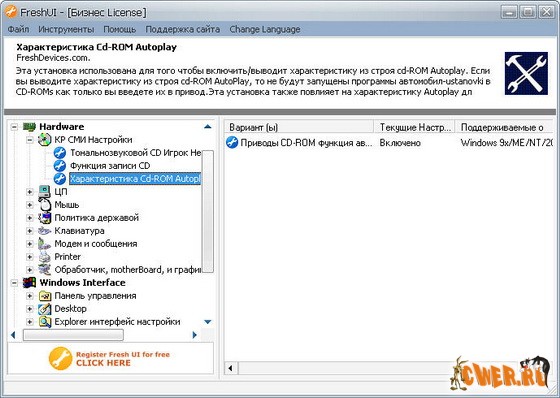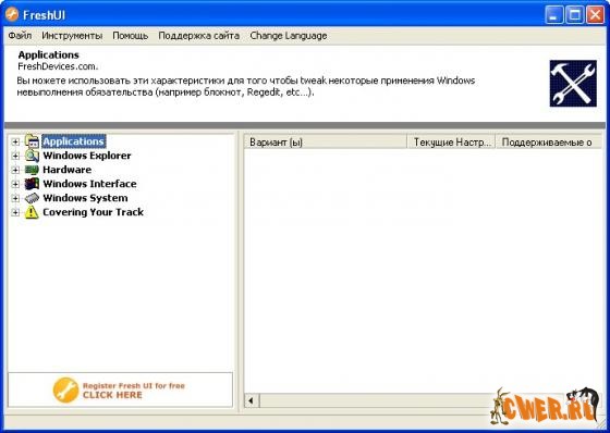 FreshUI - утилита, при помощи которой вы получите доступ к большому числу параметров операционных систем Windows, разбитым на несколько категорий — интерфейс, система, аппаратная часть, приложения (Windows) и пользователи (среда и правила).