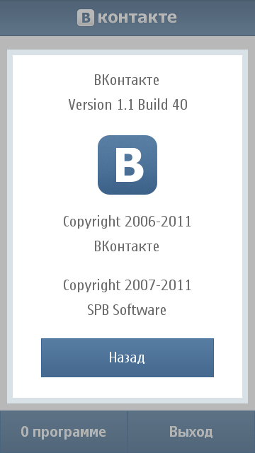 Официальное приложение Вконтакте, созданное известными разработчиками SPB. По заявлению разработчиков это приложение позволяет не только просматривать новости, переписываться и смотреть фотографии, но и слушать музыку и смотреть видео прямо из контакта в своем смартфоне, что довольно трудно для владельцев S^1. Это программа для сенсорных смартфонов на базе Symbian^1 и Symbian^3. Также эта программа доступна в магазине OVI.