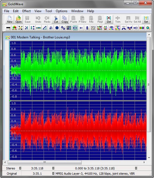 GoldWave - очень мощный звуковой редактор, предназначенный для проигрывания, редактирования, смешивания и анализа звуковых файлов. Умеет быстро работать с большими файлами. Имеет много разных эффектов. Понимает MP3, WAV, AU, IFF, VOC, SND, MAT, AIFF, raw, data, а также множество прочих форматов. Умеет конвертировать из одного формата в другой. С помощью GoldWave можно применять всевозможные эффекты (добавлять эхо, эффект "увядания" звука (Fade), редактировать эквалайзером и пр.) убирать шумы, реставрировать старые записи и т.д. GoldWave позволяет записывать звук с кассет, пластинок, радио, а также с микрофона. Инструмент CD Reader дает возможность делать точные копии треков аудиодисков.