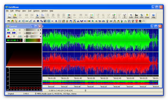 GoldWave - очень мощный звуковой редактор. Предназначен для проигрывания, редактирования, смешивания и анализа звуковых файлов. Умеет работать с большими файлами, быстрее других программ. Имеет много разных эффектов. Понимает множество форматов MP3 WAV AU IFF VOC SND MAT AIFF raw data, также умеет конвертировать из одного формата в другой. Умеет записывать файлы с audio CD.