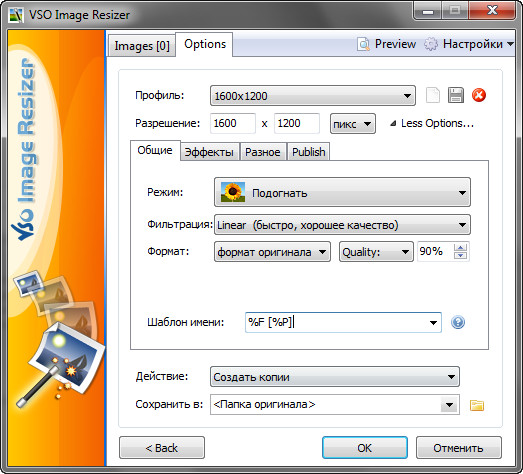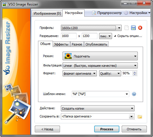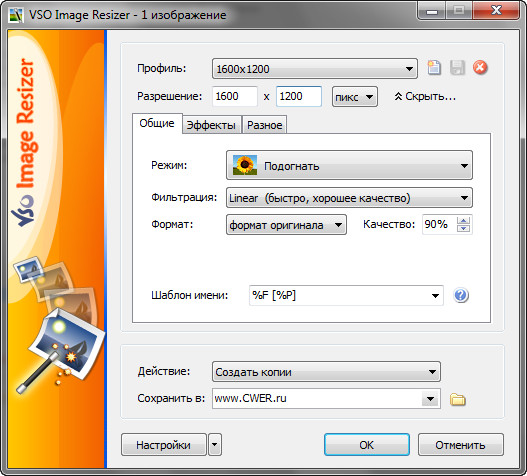 VSO Image Resizer - программа для изменения размеров цифровых картинок и изображений в различных графических форматах (на данный момент поддерживается работа с файлами JPEG, GIF, BMP, TIFF, CR2, NEF и т.д.). Также в утилите имеются возможности для компрессии файлов, конвертирования из одного формата в другой, экспорта, наложения прозрачных прозрачных и управления картинками. VSO Image Resizer интегрируется в оболочку Windows, может работать в пакетном режиме, обладает расширенными опциями настройки для продвинутых пользователей.