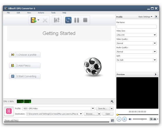 Xilisoft DPG Converter - DPG видео конвертер, конвертер AVI, MPEG, H.264 AVC, 3GP, VOB, DAT, WMV, MP4, DivX, MOV видео в DPG, DPG2, DPG3, DPG4 Nintendo DS видео, конвертер MP3, WMA, WAV, M4A аудио в MP3, MP2 Nintendo DS аудио, расчет размера видео в битрейт калькуляторе, нарезка видео, соединение видео, настройка параметров конвертирования, пакетный режим конвертирования, предварительный просмотр.