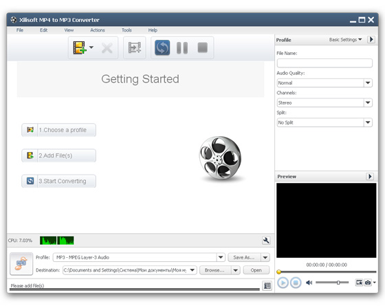 Xilisoft MP4 to MP3 Converter - программа для извлечения и конвертирования аудио из видео файлов. Конвертирует MP4 и многие другие популярные видео форматы, а также большинство аудио форматов в MP3 файлы. Обеспечивает высокую скорость конвертирования. На выходе вы получаете любимую музыку или диалоги из фильмов высокого качества для своего плеера.