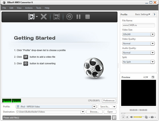 Xilisoft MKV Converter - позволяет конвертировать MKV файлы ("матрешка") в видео форматы, такие как H.264/AVC, WMV, DivX, MP4, MOV, и XviD, или извлекать MP3, WAV, WMA, AAC и M4A. Есть поддержка пакетного режима работы, предварительный просмотр результата, выбор и настройка кодеков, выбор и настройка параметров конвертирования, поддержка iPod, PSP, Apple TV, PS3, Xbox и других мобильных устройств, высокая скорость работы, высокое качество результата, приятный и удобный интерфейс.