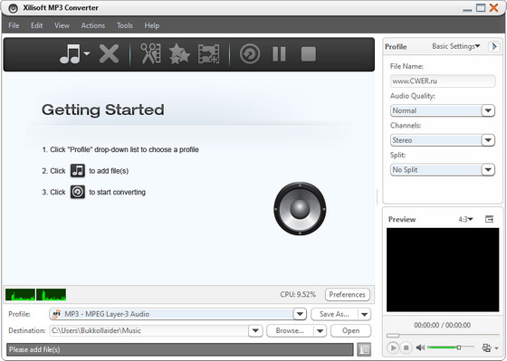 Xilisoft MP3 Converter конвертирует практически все популярные аудио форматы (WMA, WAV, AAC, FLAC, OGG, APE и т.д.) в MP3 аудио файлы, а также извлекает MP3 музыку почти из любых видео форматов, включая видео форматы высокой четкости (HD) (AVI, MPEG, MP4, WMV, H.264/MPEG-4 AVC, AVCHD и т.д.).