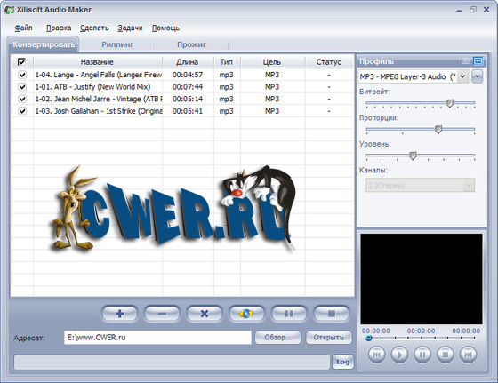 Xilisoft Audio Converter обеспечивает простой и понятный путь конвертации MP4 в MP3, M4A в MP3 и AAC в MP3, перекодирует аудио между всеми популярными аудиоформатами, такими как WAV, WMA, FLAC, OGG, APE, AAC, MP4, MP3, M4A, MP2, VQF и другие. Инструмент, способный решить почти любые проблемы в области конвертирования аудиофайлов. Поддерживаются все популярные форматы, пакетная обработка и перенос информации из ID3-тегов.