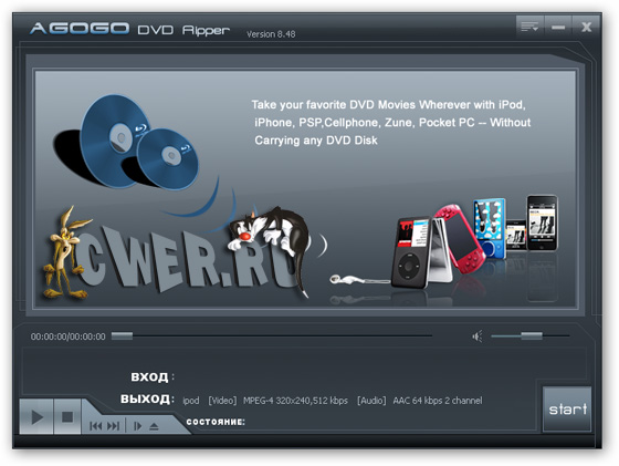 Agogo DVD Ripper это удобная программа, которая позволит вам сконвертировать любимый DVD диск в один из следующих форматов: DivX, XviD, AVI, iPod, PSP, 3GP, Pocket PC, VCD, SVCD. Программа очень проста в использовании – всего пару щелчков мыши, вы выбираете субтитры, аудио-дорожки и редактируете качество аудио и видео.