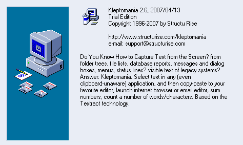 Kleptomania позволяет вам выделить и скопировать текст в любом месте экрана, включая области, которые вы не можете выделить с помощью мыши, такие как столбцы данных в программе редактирования текстов или сообщение об ошибке любой программы.