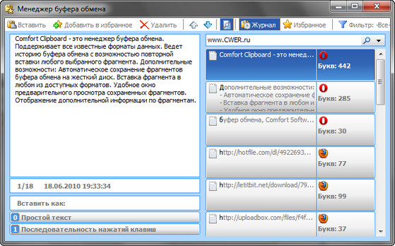 Comfort Clipboard - Это надежный персональный менеджер буфера обмена, который поддерживает все известные форматы данных!