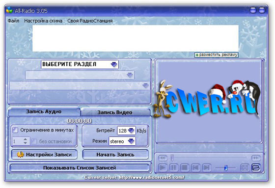 Программа для прослушивания радиостанций и просмотра ТВ-каналов, вещающих через интернет с возможностью записи аудио и видео потока. После установки All-Radio у вас появится доступ к 2500 радиостанциям и 1200 телевизионным каналам со всех уголков планеты (более 100 стран). В программе собраны практически все РАДИО и ТВ станции, вещающие на русском языке. Положительным моментов является то, что вам не надо обновлять программу в целях пополнения списка станций. При запуске последние списки автоматически загружаются с сервера разработчиков.