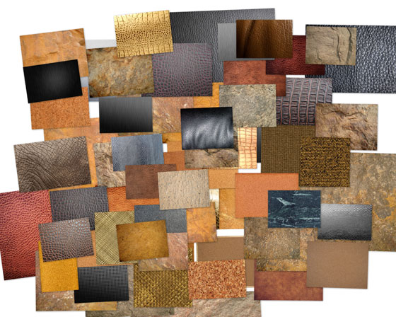 Металлические, пробковые, кожаные, плетеные и каменные текстуры.