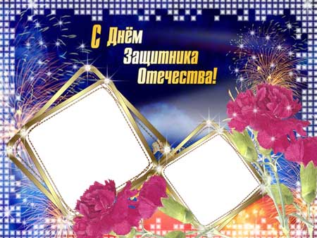 Великолепная открытка к 23-му февраля. Нужно только вставить фотографию в шаблон и можно сразу же нести распечатывать - до праздника как раз успеете.