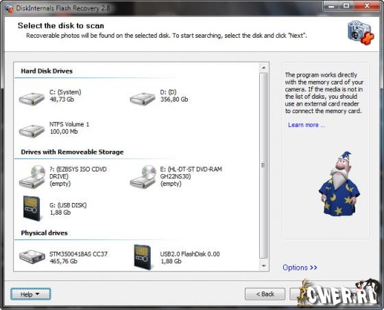 DiskInternals Flash Recovery - восстанавливает все поврежденные и удаленные фотографии с карт памяти и жестких дисков. Фотографии будут восстановлены, даже если диск был переформатирован или возникли ошибки в работе аппаратуры. Программа восстанавливает фотографии с жестких дисков, внешних дисков, камер и flesh накопителей, таких как Smart Media, Compact Flash, Memory Stick, MicroDrive, xD Picture Card, Flash Card, PC Card, Multimedia Card, Secure Digital Card и других.
