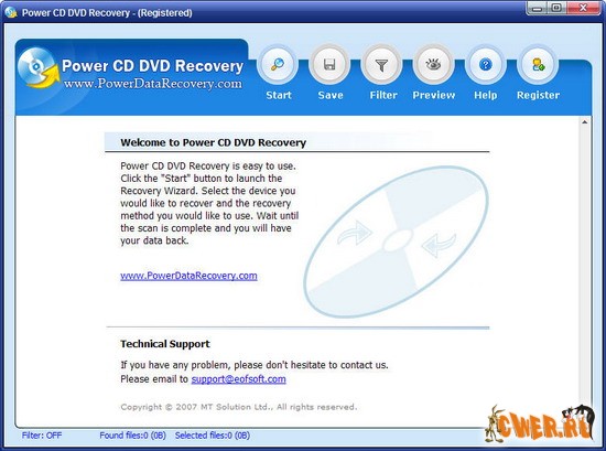 Лёгкая в обращении программа, нацеленная на восстановление потерянных и удалённых файлов с повреждённых, поцарапанных и дефектных CD/DVD дисков. Данные могут быть восстановлены после быстрой очистки заголовка диска RW, после записи обычными программами прожига, а также после UDF-программ: DirectCD, InCD, packetCD.
