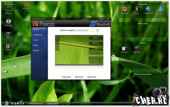 Stardock Fences – новая разработка, призванная организовать место на Вашем Рабочем столе, распределив иконки по категориям, выбрав для них различное месторасположение на экране и позволяющая скрывать иконки, когда они не используются. Fences лишь расширяет возможности Рабочего стола, а не заменяет его.