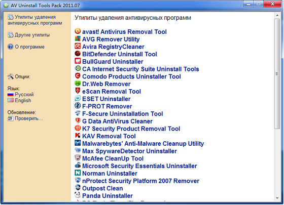 Antivirus Uninstall Tools Pack - это бесплатный пакет утилит, предназначенных для удаления различных антивирусных программ. В него входят утилиты для удаления более 30 антивирусных и антишпионских программ, а также сетевых экранов.