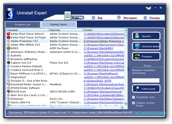 Uninstall Expert - удобная и небольшая по размеру программа для качественной деинсталляции установленных ранее приложений. Uninstall Expert обладает большим количеством функций. Является альтернативой стандартному диалогу установки/удаления Windows и имеет, в сравнении с ним, ряд функциональных преимуществ, работая при этом в несколько раз быстрее. Программа предоставляет пользователю детальную информацию о каждом установленном приложении.