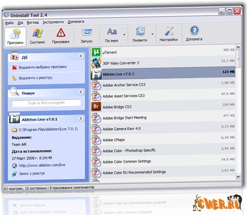 Uninstall Tool - представляет собой аналог апплета "Установка и Удаление программ", но предоставляет пользователю гораздо больше возможностей. Так, при помощи этой утилиты можно удалить даже те программы, информация о которых отсутствует в штатных средствах системы. Кроме того, Uninstall Tool позволяет полностью стереть все упоминания о том или ином ПО из системного реестра (так как довольно часто даже после деинсталляции кое-какие данные остаются). Плюс ко всему, Uninstall Tool гораздо нагляднее, удобнее и, что немаловажно, быстрее, чем стандартный апплет Windows. Это безопасный и надежный способ удалять ненужные приложения и повысить эффективность работы вашего компьютера.