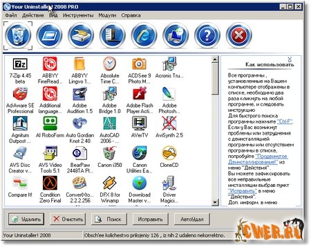 Your Uninstaller! - один из лучших деинсталяторов приложений. Эту сборку сделал вдогонку demiancz. В ней русский интерфейс отображается КОРРЕКТНО!