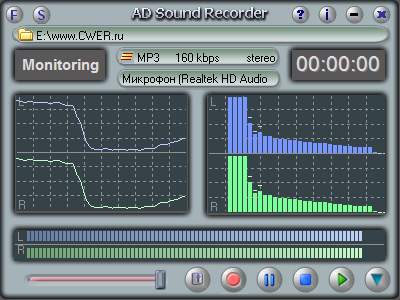 AD Sound Recorder - небольшая программа для записи аудио. AD Sound Recorder поддерживает три вида форматов звуковых файлов - WAV, MP3 и WMA. С AD Sound Recorder Вы сможете записать звук с микрофона, потоков аудио из Интернета, или музыку, которая проигрывается Winamp, Windows Media Player, Quick Time, Real Player, Flash, games, и т.д. не теряя качества. AD Sound Recorder предоставляет зрительные образы входящего звука. Вы можете настроить громкость записи, приостанавливать или возобновлять запись по своему желанию.