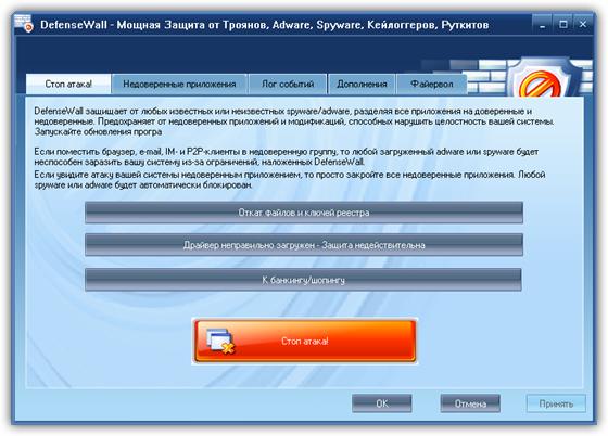 DefenseWall HIPS (Host Intrusion Prevention System) - это самый лёгкий и простой способ защитить себя от вредоносного ПО, от которого не способен защитить ваш анти-вирус, когда вы находитесь в Интернете! Используя технологии проактивной защиты следующего поколения, DefenseWall поможет вам добиться максимального уровня защиты, не требуя от вас никаких специальных знаний и постоянных онлайновых обновлений баз. Никаких сигнатур, никаких всплывающих окон, никаких ложных срабатываний. Это просто надёжная и прозрачная защита, лёгкая в использовании и мощная.