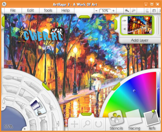 Эта программа достаточно неординарна: она имитирует рисование на обычной бумаге привычными инструментами. Во всем дизайне чувствуется реализм. Лист, на котором рисуешь, легко поворачивается, приближается и удаляется. Из инструментов можно выбрать карандаш, кисть, фломастер, пастель и много других. Присутствует регулировка давления, прилагаемое при рисовании каким-либо инструментом, например, кистью или карандашом.