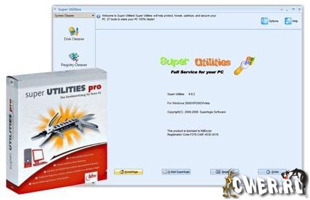 Super Utilities - сборник полезных утилит, при помощи которых вы сможете наладить, очистить и ускорить работу своей операционной системы. Пакет утилит служит для ежедневного использования и позволяет производить поиск и удаление ненужных файлов, очистку и оптимизацию системного реестра, имеет менеджер автозагрузки, а также позволяет производить защиту папок, резервное копирование, анализ папок. Также программа имеет средство для полного удаления ставших ненужными программ, менеджер процессов, менеджер конфиденциальности Internet Explorer и многое другое. В программе имеется простой пользовательсий интерфейс с мультиязычной поддержкой, а также имеется поддержка смены скина интерфейса. Работает на платформах Windows 98/Me/2000/XP/2003/Vista.