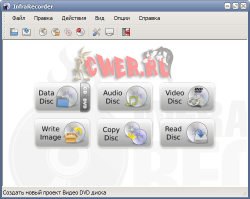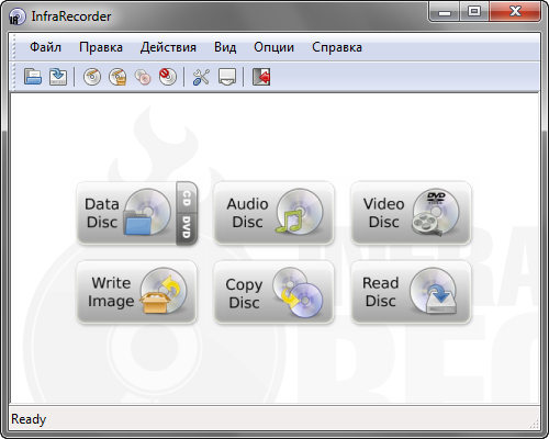 Infra Recorder - программа для записи данных на CD/DVD диски. Предоставляет пользователю возможность создания CD/DVD дисков с данными, музыкальных Audio CD и DVD видео дисков. Программа способна не только записывать данные непосредственно на диск, но и создавать ISO и BIN образы, а также использовать их в качестве промежуточной стадии при полном копировании диска на другой диск (в случае, наличия в системе только одного пишущего привода).
