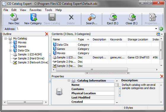 CD Catalog Expert - программа для сканирования и каталогизации ваших компакт-дисков или отдельно выбранных директорий. Программа хранит данные о названии файла (директории), его размере и дате. Представление информации идет не в виде дерева, а в том виде, как ее отображают файловые менеджеры (Total Commander, FAR и тд). Структура Ваших компакт-дисков хранится в одном файле и может быть легко перенесена на другой компьютер.