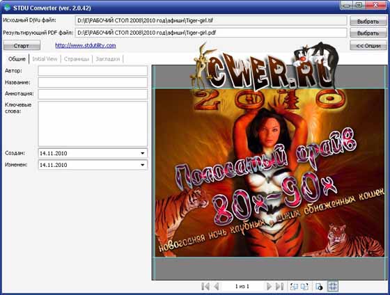 STDU Converter - конвертор DjVu в PDF всего в два клика. Вы можете конвертировать только часть книги или ее целиком, а так же выстроить свое дерево документа на выходе. Пользоваться чрезвычайно просто, - находите документ в DjVu или TIFF формате и нажимате кнопку "Старт", и Все! Не забудьте только, указать папку куда вы будите складывать готовые PDF файлы.