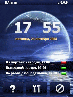 HAlarm - будильник позволяющий устанавливать параметры, которые вам требуются: дни недели, время и мелодия (возможно mp3). После ввода необходимых параметров будильников программа разбудит вас, запустившись и проиграв выбранную мелодию. Будильник, который будит вас в данный момент, может быть перенесен на несколько минут позже.