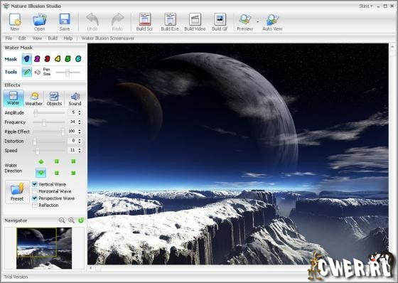 Nature Illusion Studio - поможет Вам превратить обычные снимки в прекрасные анимированные пейзажи. Программа позволяет накладывать разные графические и звуковые эффекты, и затем конвертировать результат в экранную заставку, исполняемый файл, анимированный рисунок или видео-файл.