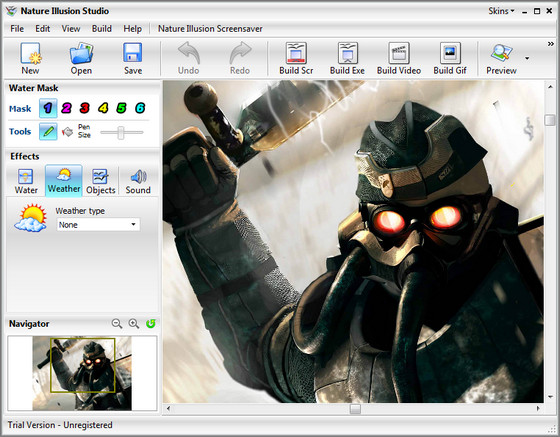 Nature Illusion Studio поможет вам превратить обычные снимки в прекрасные анимированные пейзажи. Программа позволяет накладывать разные графические и звуковые эффекты, и затем конвертировать результат в экранную заставку, исполняемый файл, анимированный рисунок или видео-файл. Загружаете свою любимую фотку с пейзажем, выделяете с помощью масок области, которые нужно оживить (например, поверхность водоема, ручей, водопад и т.д.), добавляете звук (шум прибоя, пение птиц, журчание воды), можно добавить падающий снег или дождь. Теперь вы можете самостоятельно создавать скринсейверы профессионального качества, делать авторские анимированые GIF-ы на основе ваших фото, создать собственный эксклюзивный анимированный аватар. Интерфейс программы прост и интуитивно понятен.