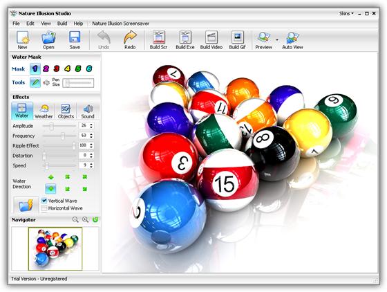 Nature Illusion Studio - поможет Вам превратить обычные снимки в прекрасные анимированные пейзажи. Программа позволяет накладывать разные графические и звуковые эффекты, и затем конвертировать результат в экранную заставку, исполняемый файл, анимированный рисунок или видео-файл.