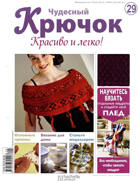 Коллекция «Чудесный крючок. Красиво и легко!» — это простой и доступный способ освоить искусство вязания крючком. С каждым номером вы сможете научиться различным способам вязания крючком, а также познакомитесь с новым узором, выполнение которого представлено пошагово с помощью простых объяснений и фотографий. В каждом выпуске предлагаются прекрасные модели для вас и вашего дома. Откройте в себе талант и познайте радость творчества! Регулярно получая описания простых в исполнении моделей, вы соберете собственную коллекцию.