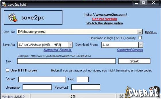 save2pc - программа для загрузки и конвертирования видео файлов, размещенных на популярном видео-хостинге YouTube. При помощи YouTube Downloader можно просто загрузить хоть какой видео файл веб-сервиса YouTube по приведенной на его страничке ссылке. Все, что требуется от юзера - это скопировать и вставить ссылку в особое окно програмки, выбрать хотимый формат и запустить автоматическую загрузку и конвертирование видео файла.