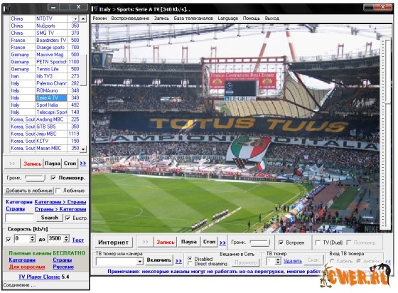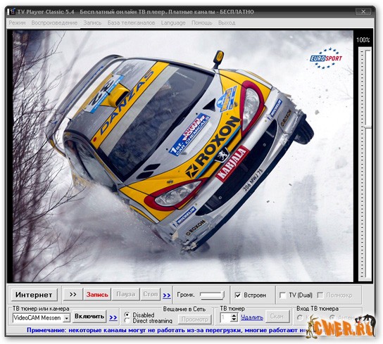 Бесплатная программа для просмотра и записи Онлайн Интернет Телевидения со сжатием "на лету" в формат AVI (Xvid, DivX и др.), а так же телеканалов, принимаемых через ТВ тюнер или видеопотока с видеокамеры (если имеются в системе). Программа позволяет вещать собственный канал в Интернет с ТВ тюнера, видеокамеры или другого интернет телеканала. Просмотр более 20-ти платных русскоязычных и 400 международных каналов и более 1200 бесплатных телевизионных каналов из 109 стран мира. Для пользователей TV Player Classic бесплатно транслируются следующие платные русские телеканалы - РЕН ТВ, ТНТ, Юмор ТВ, World Fashion, Русский ЭКСТРИМ, Eurosportnews, РТР Планета, Муз.канал, MusicBoxRU, Special Rock TV, Вести, Eurosportnews, СТС, ТБН, Мир, Спас ТВ, ТВ Центр, O2 TV, СГУ ТВ, ТДК, STYLE TV, A - One, Bridge TV, RuTV, AMTV, РБК ... Для просмотра онлайн ТВ не нужен ТВ тюнер, все каналы транслируются напрямую через интернет соединение. Поддерживаются все версии Windows, включая Windows Vista.