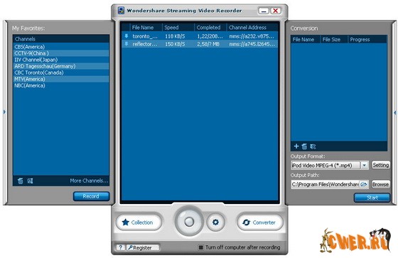 Wondershare Streaming Video Recorder работает по принципу "что смотрю, то и получаю". Будучи мощным онлайновым ТВ рекордером, программа позволяет записывать практически все ТВ-каналы, веб-видео, скачивать онлайновые ТВ-шоу и даже потоковые фильмы, транслируемые различными сетевыми потоковыми протоколами.