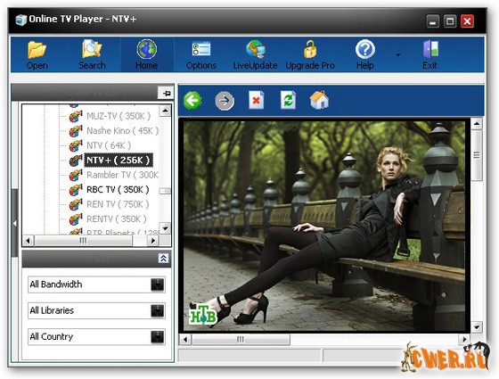 Программа для просмотра более 850 Internet TV каналов и прослушивания более 1500 Internet радио каналов. Для нормального просмотра скорость интернета должна быть не менее 64Кбит/с (желательно 256Кб/с и выше). Также с помощью Online TV Player можно просматривать музыкальные клипы из разных источников. В программе доступна запись звука в форматах WAV, OGG и MP3.