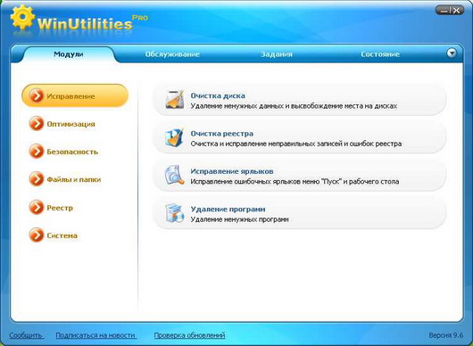 WinUtilities - набор утилит, предназначенных для настройки операционных систем семейства Windows. WinUtilities позволяет находить и удалять критические неисправности, неправильные ссылки и ключи в реестре, поможет правильно удалить приложения и программы, а также очистит историю интернета, cookies и многое другое. Также в программе есть возможность настроить автозапуск программ и изменять скрытые опции ОС.