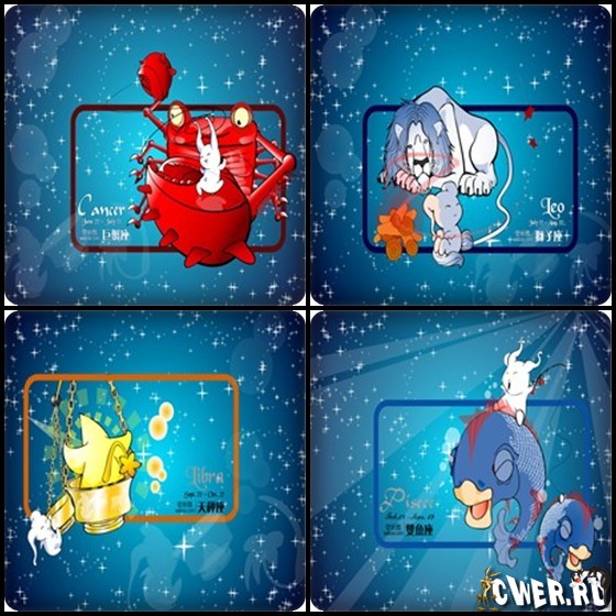Знаки зодиака на звездном небе в в двух векторных форматах AI&EPS